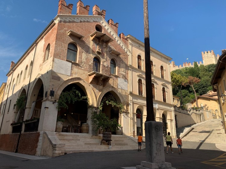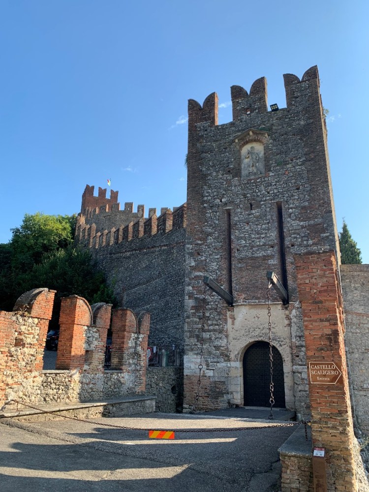 Wie sehr viele bzw. wahrscheinlich sogar die meisten Befestigungsanlagen und Burgen in Oberitalien ist auch das Castello di Soave von der Scaliger-Familie erbaut worden, das war ca. 1370. Die Stadtbefestigung ist noch komplett erhalten mit ihren 24 Türmen und den beiden großen Stadttoren. Die Scaliger waren zwischen 1262 und 1387 die sogenannten Herren von Verona. Eines der beiden Stadttore trägt auch den Namen Porta Verona. Das berühmte Castelvecchio in Verona ist der Scaliger-Familie übrigens ebenso zu verdanken, wie das Castello in Malcesine am Gardasee.