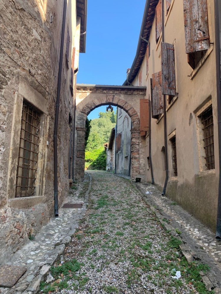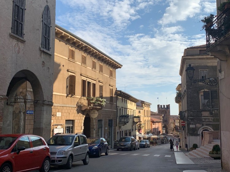Soave ist aber eben mehr als nur der Wein. Der Wein ist nach dem Weinanbaugebiet benannt, welches wiederum seinen Namen von dem Örtchen Soave erhalten hat. Und dieses Örtchen hat in der Tat eine sehr schöne mittelalterliche Altstadt und ein Castello mit wunderbarem Ausblick. Zugegebenermaßen ein Ausblick, wie ihn natürlich eigentlich alle Burgen haben – war ja notwendig zu der Zeit in der sie gebaut wurden und es war wohl deswegen auch zweckdienlich sie auf Anhöhen zu errichten.
