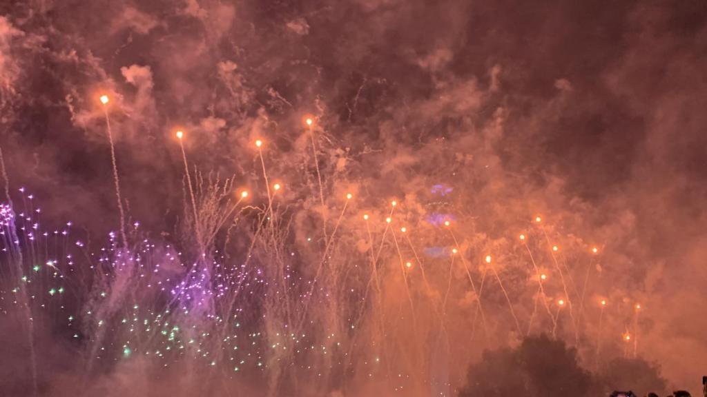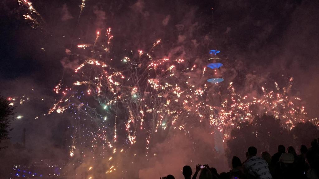 Auf dem Olympiasee gegenüber vom Olympiaturm war jeden Abend eine Lichtinstallation, welche sich aber mit den Konzerten zeitlich nicht vereinbaren lies. An dem Abend hat es dann zum Glück perfekt gepasst. Auf einem halbrunden Wasserstrahl wurde Licht projiziert, welches sich zu passender Musik in einen Regenbogen entfaltet und im See gespiegelt hat. Ich mag sowas.